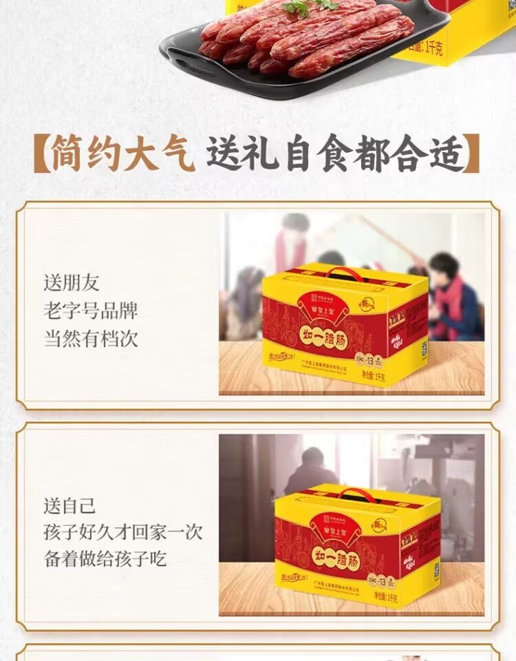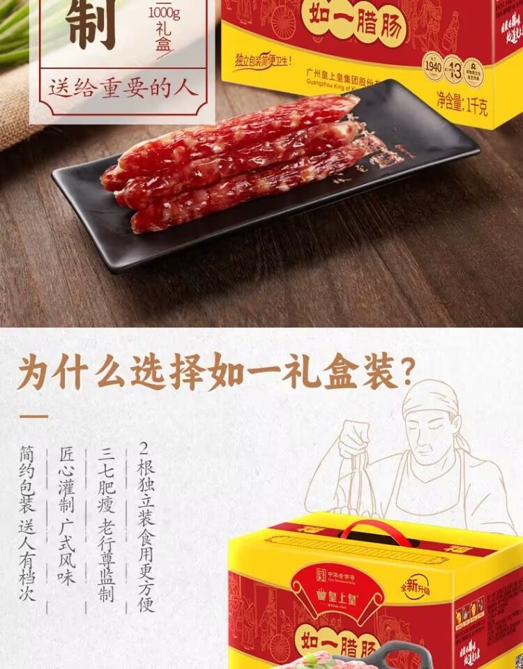 Emperor Huang Ruyiqifen thin sausage 1000g family gift box Cantonese sausage