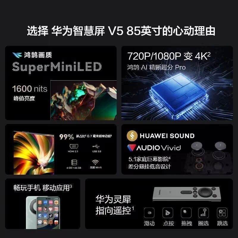 Huawei Smart Screen V5 85-inch MiniLED Honghu picture quality 4K ultra-high-definition smart TV remote control