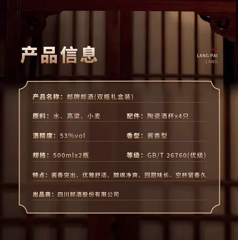 Langpai Langjiu Gift Box 53 degrees 500ml*2 bottles of gift box Maotai-flavor liquor